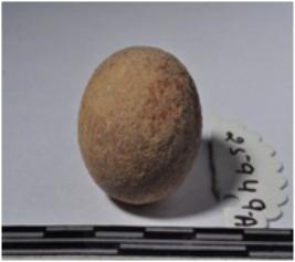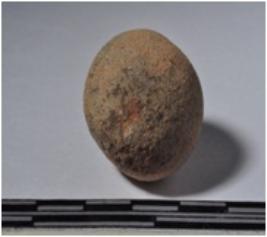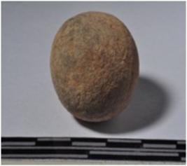 | Description / विवरण | A terracotta sling ball, round in shaped and rough surface. |