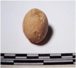 | Description / विवरण | A terracotta round in shaped sling ball of smooth surface. |
