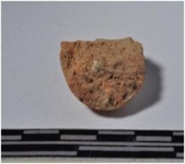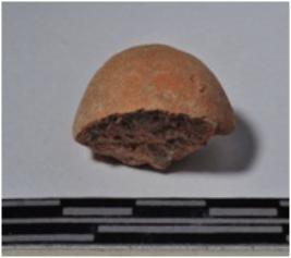 | Description / विवरण | A fragment of a terracotta sling ball, globular in shaped and smooth surface. |