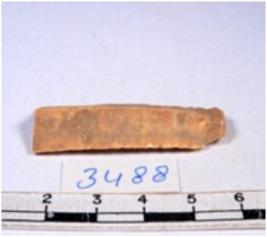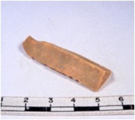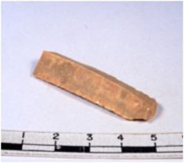 | Description / विवरण | A fragment of a rectangular shaped chert blade showing dorsal sides with sharp cutting edges having smooth surface and triangular section. |