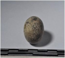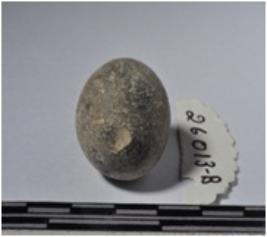 | Description / विवरण | A terracotta sling ball, round in shaped and smooth surface. |