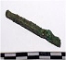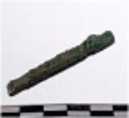 | Description / विवरण | A mended copper chisel sharpen at both end of rough surface. |