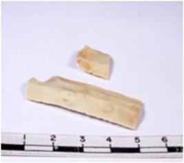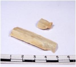 | Description / विवरण | A fragment of a rectangular shaped chert blade showing dorsal sides with sharp cutting edges having smooth surface and triangular section. |