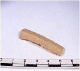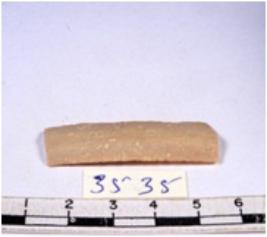 | Description / विवरण | A fragment of a rectangular shaped chert blade showing dorsal sides with sharp edges having smooth surface and triangular section. |