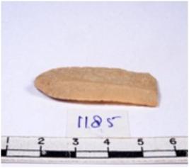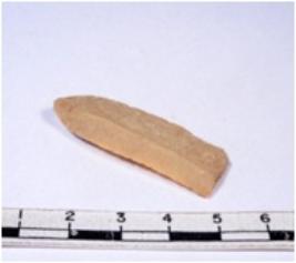 | Description / विवरण | A fragment of a rectangular shaped chert blade showing dorsal sides with sharp edges having smooth surface and triangular section. |