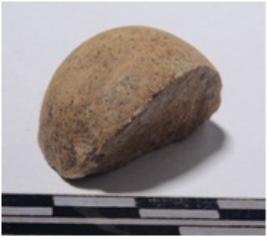 | Description / विवरण | A fragment of a stone sling ball round in shape of rough surface. |