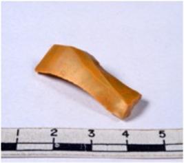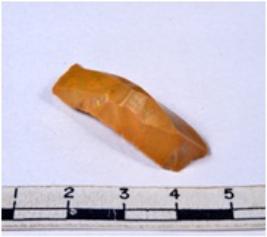 | Description / विवरण | A fragment of a rectangular shaped jasper blade showing dorsal sides with sharp edges having smooth surface and triangular section. |