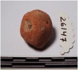 | Description / विवरण | A fragment of a terracotta round in shaped sling ball, of rough surface. |