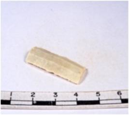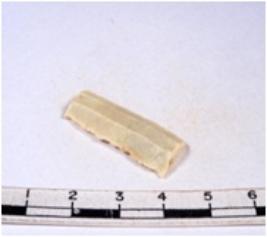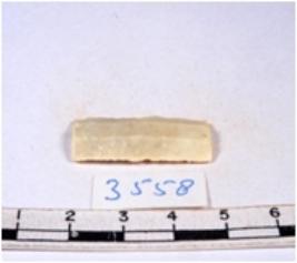 | Description / विवरण | A fragment of a rectangular shaped chert blade showing dorsal sides with sharp edges having smooth surface and triangular section. |