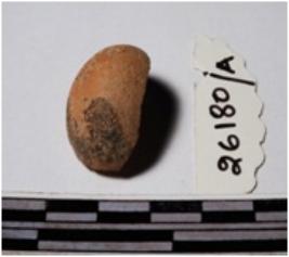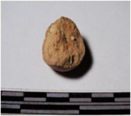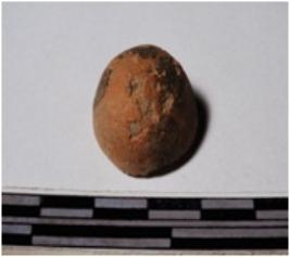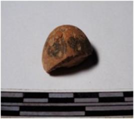 | Description / विवरण | A fragment of a terracotta round in shaped sling ball of smooth surface. |