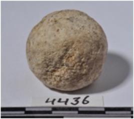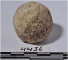 | Description / विवरण | A stone sling ball, round in shape of rough surface. |