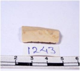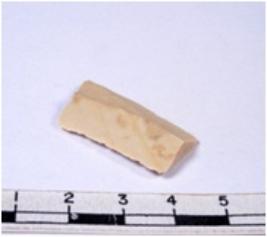 | Description / विवरण | A fragment of a rectangular shaped chert blade showing dorsal sides with sharp edges having smooth surface and triangular section. |