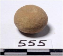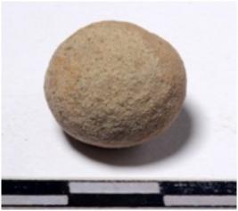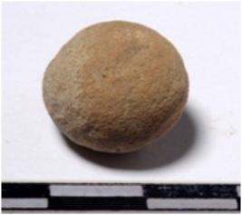 | Description / विवरण | A terracotta sling ball, round in shape of smooth surface. |