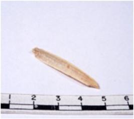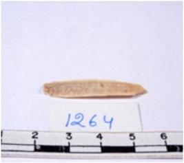 | Description / विवरण | A fragment of a rectangular shaped chert blade showing dorsal sides with sharp edges having smooth surface and triangular section. |