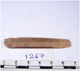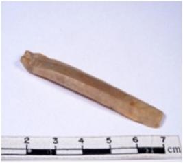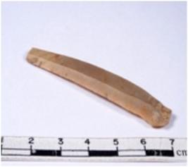 | Description / विवरण | A fragment of a rectangular shaped chert blade showing dorsal sides with sharp edges having smooth surface and triangular section. |