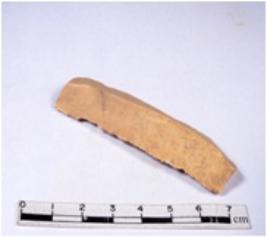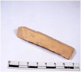 | Description / विवरण | A fragment of a rectangular shaped chert blade showing dorsal sides with sharp edges having smooth surface and triangular section. |