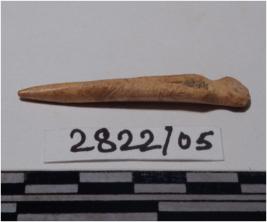 | Description / विवरण | A bone point having pointed one end, circular in section of polished surface. |