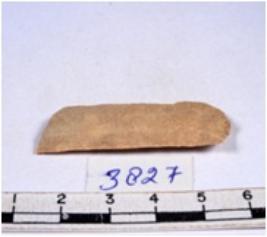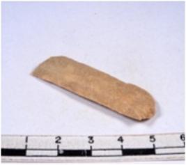 | Description / विवरण | A fragment of a rectangular shaped chert blade showing dorsal sides with sharp edges having smooth surface and triangular section. |