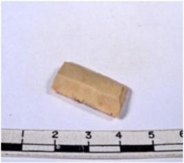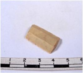 | Description / विवरण | A fragment of a rectangular shaped chert blade showing dorsal sides with sharp edges having smooth surface and triangular section. |