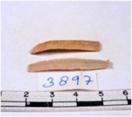 | Description / विवरण | A fragment of a rectangular shaped chert blade showing dorsal sides with sharp edges having smooth surface and triangular section. |
