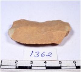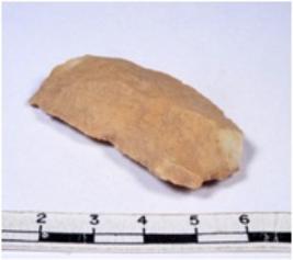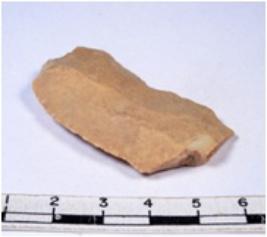 | Description / विवरण | A fragment of a rectangular shaped chert blade showing dorsal sides with sharp cutting edges having smooth surface and triangular section. |