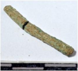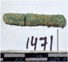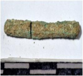 | Description / विवरण | A fragment of a copper rod, broken both end, circular in section of rough surface. |