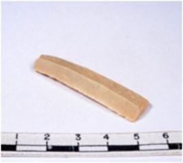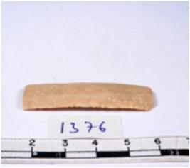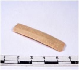 | Description / विवरण | A fragment of a rectangular shaped chert blade showing dorsal sides with sharp cutting edges having smooth surface and triangular section. |