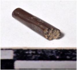 | Description / विवरण | A fragment of a stone drill bit, circular in section broken both end of smooth surface. |
