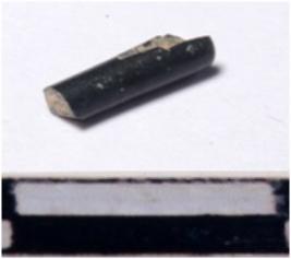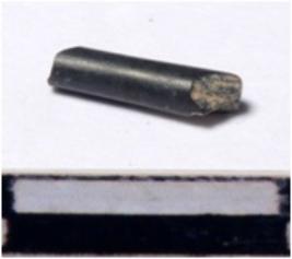| Description / विवरण | A fragment of a stone drill bit, circular in section, broken from both end of smooth surface. |