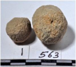 | Description / विवरण | A stone sling ball round in shape of rough surface. |