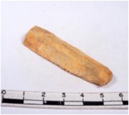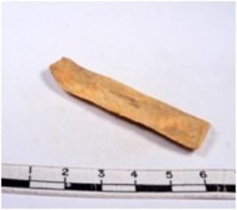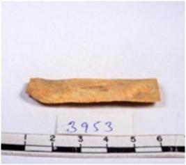 | Description / विवरण | A fragment of a rectangular shaped chert blade showing dorsal sides with sharp edges having smooth surface and triangular section. |