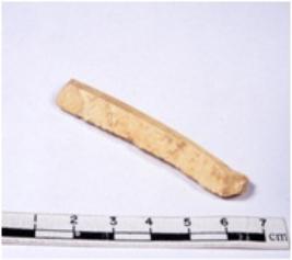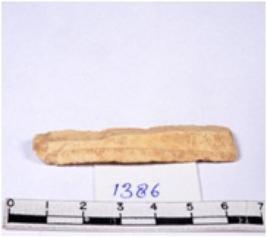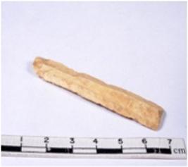 | Description / विवरण | A fragment of a rectangular shaped chert blade showing dorsal sides with sharp cutting edges having smooth surface and triangular section. |