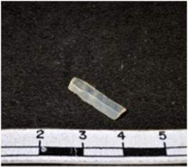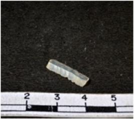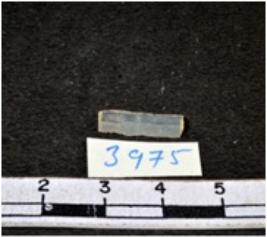 | Description / विवरण | A fragment of a rectangular shaped chert blade showing dorsal sides with sharp edges having smooth surface and triangular section. |