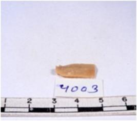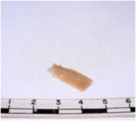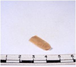 | Description / विवरण | A fragment of a rectangular shaped chert blade showing dorsal sides with sharp edges having smooth surface and triangular section. |