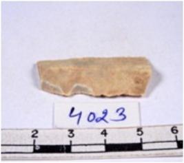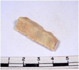 | Description / विवरण | A fragment of a rectangular shaped chert blade showing dorsal sides with edges cutting having smooth surface and triangular section. |