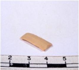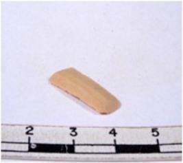 | Description / विवरण | A fragment of a rectangular shaped chert blade showing dorsal sides with sharp cutting edges having smooth surface and triangular section. |