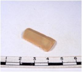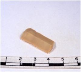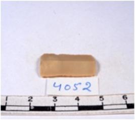 | Description / विवरण | A fragment of a rectangular shaped chert blade showing dorsal sides with sharp cutting edges having smooth surface and triangular section. |