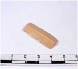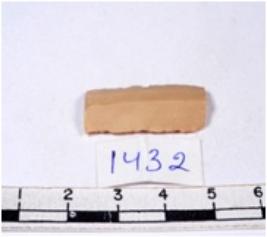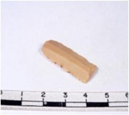 | Description / विवरण | A fragment of a rectangular shaped chert blade showing dorsal sides with sharp cutting edges having smooth surface and triangular section. |