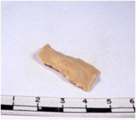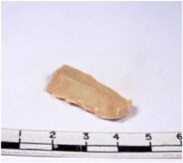 | Description / विवरण | A fragment of a rectangular shaped chert blade showing dorsal sides with sharp cutting edges having smooth surface and triangular section. |