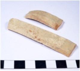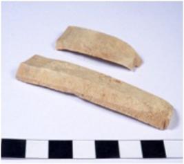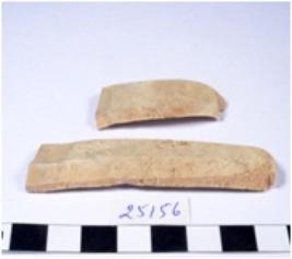 | Description / विवरण | A fragment of a rectangular shaped chert blade showing dorsal sides with sharp cutting edges having smooth surface and triangular section. |