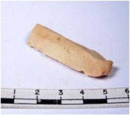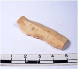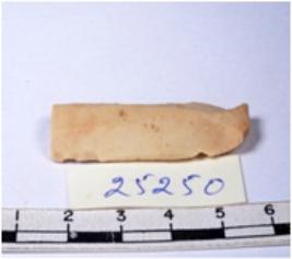 | Description / विवरण | A fragment of a rectangular shaped chert blade showing dorsal sides with sharp edges having smooth surface and triangular section. |