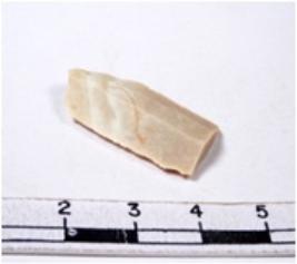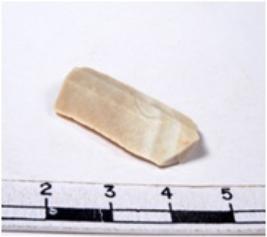 | Description / विवरण | A fragment of a rectangular shaped chert blade showing parallel sides with sharp edges having smooth surface and uneven section. |