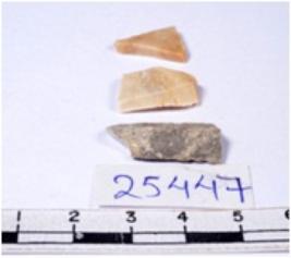 | Description / विवरण | A fragment of a rectangular shaped chert blade showing dorsal sides with sharp edges having smooth surface and triangular section. |