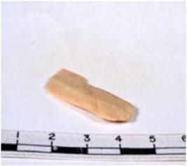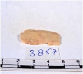 | Description / विवरण | A fragment of a rectangular shaped chert blade showing dorsal sides with sharp edges having smooth surface and triangular section. |