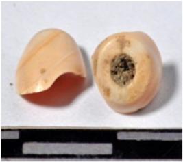 | Description / विवरण | A fragment of a carnelian bead, circular in section orange in colour of smooth surface. |