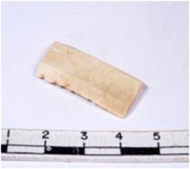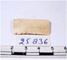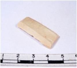 | Description / विवरण | A fragment of a rectangular shaped chert blade showing parallel sides with sharp edges having smooth surface and triangular section. |