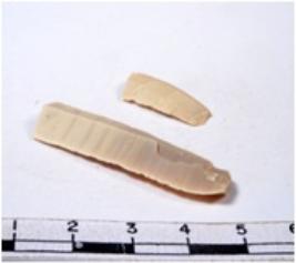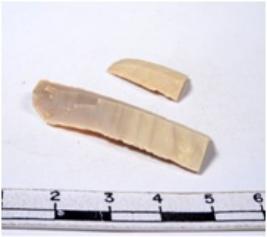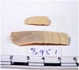 | Description / विवरण | A fragment of a rectangular shaped chert blade showing dorsal sides with sharp edges having smooth surface and triangular section. |