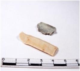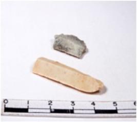 | Description / विवरण | A fragment of a rectangular shaped chert blade showing dorsal sides with sharp cutting edges having smooth surface and triangular section. |