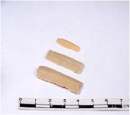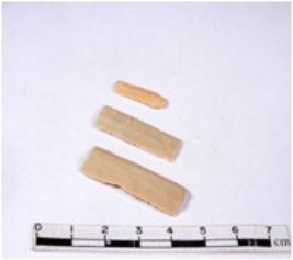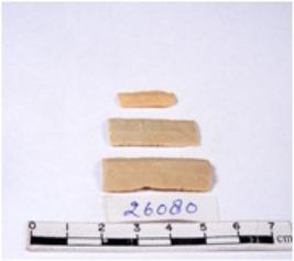 | Description / विवरण | A fragment of a rectangular shaped chert blade showing dorsal sides with sharp cutting edges having smooth surface and triangular section. |