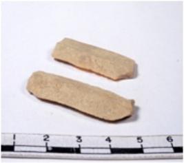 | Description / विवरण | A fragment of a rectangular shaped chert blade showing parallel sides with sharp edges having smooth surface and uneven section. |